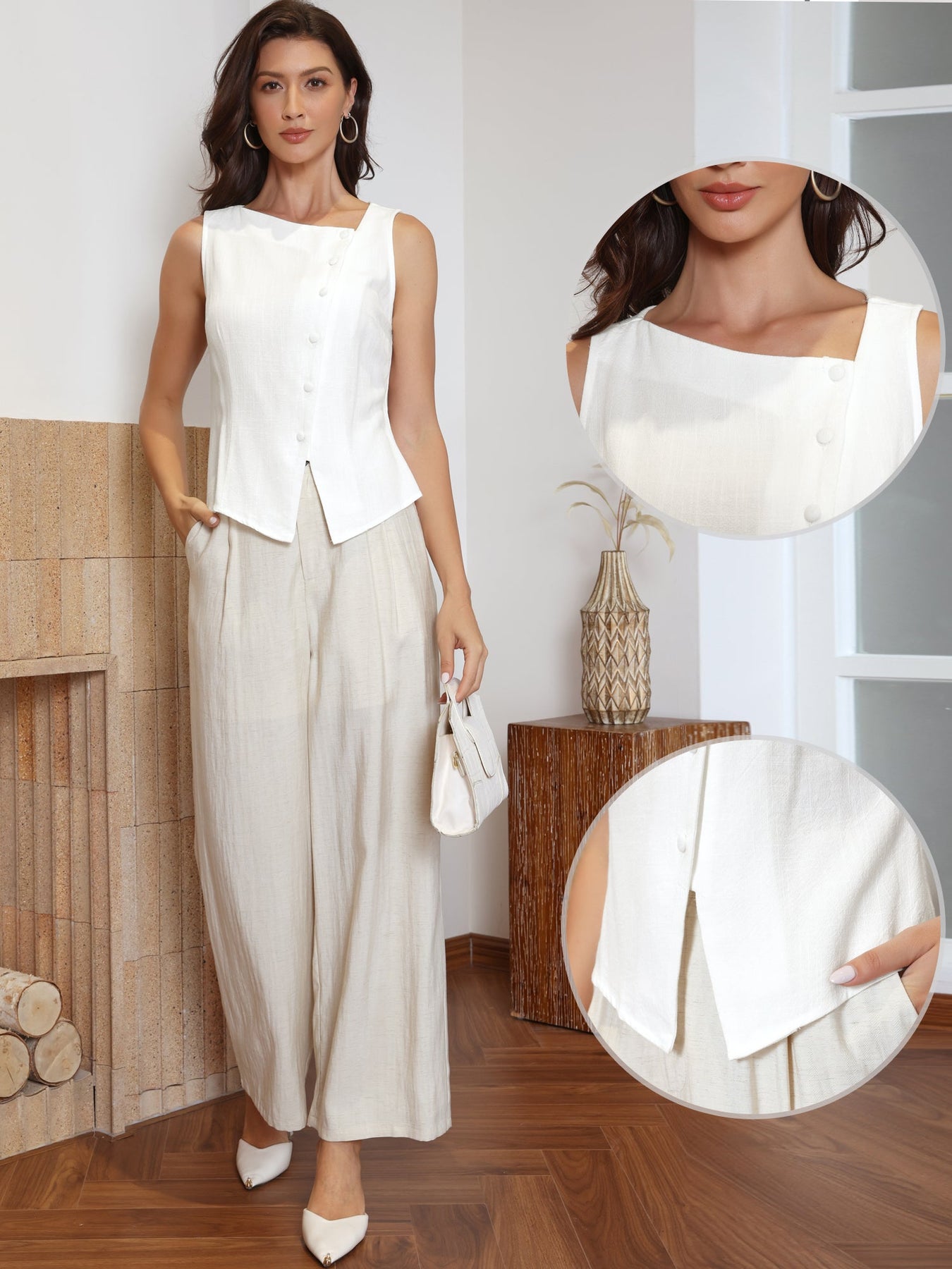 Damska bluzka bez rękawów z asymetrycznym dołem i guzikami