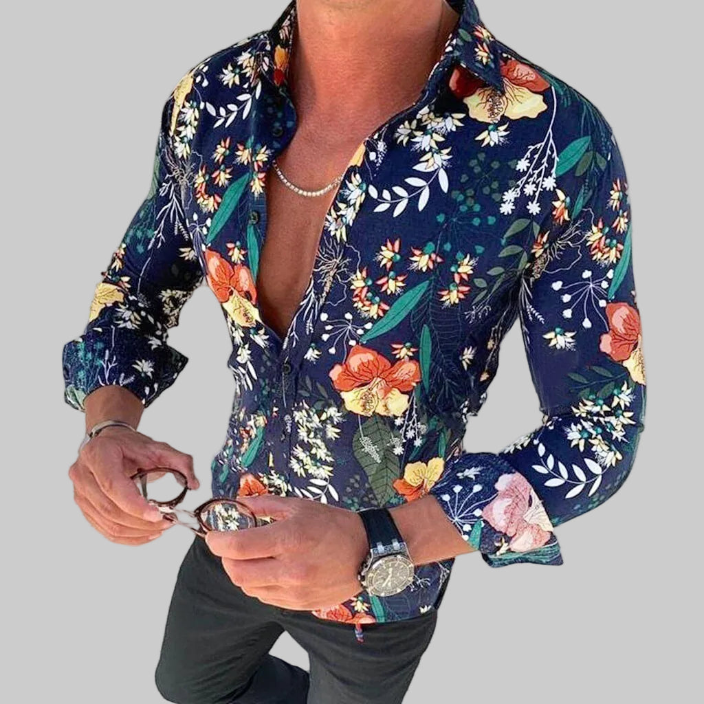 Męska Koszula Hawajska z Długim Rękawem i Wzorem Kwiatowym