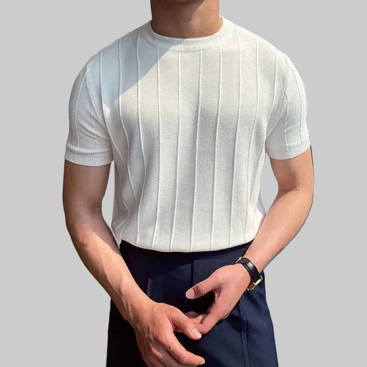Męski T-Shirt z Okrągłym Dekoltem i Teksturowaną Powierzchnią w Prążki