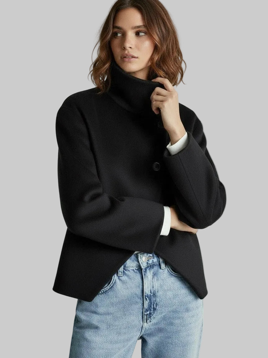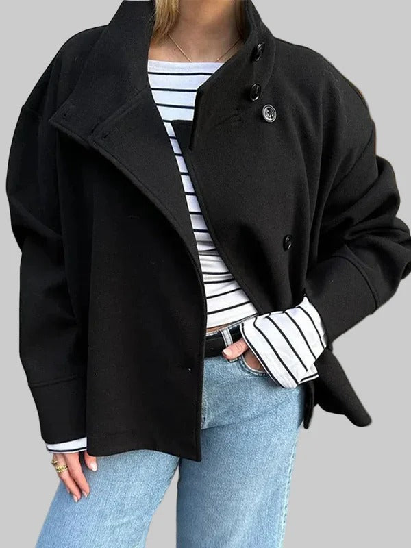 Damska Kurtka z Wysokim Kołnierzem i Zapięciem na Guziki
