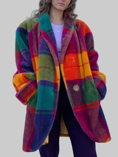 Damska kurtka oversize w kratę z kołnierzem