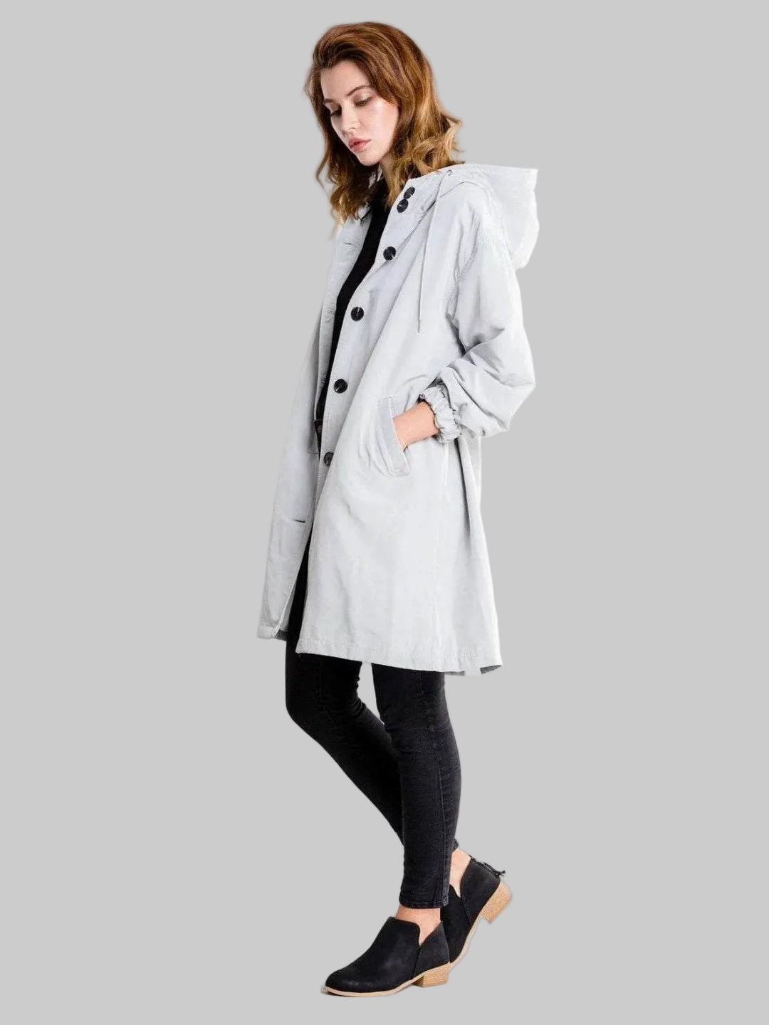 Damska Wodoodporna Kurtka z Kapturem Przezroczysta z Paskiem