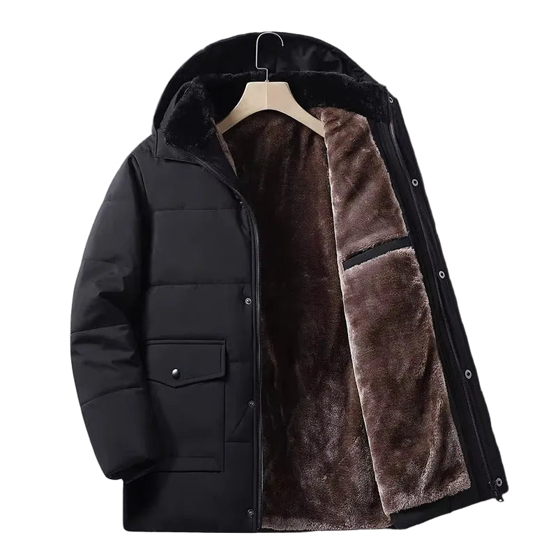 Męska Kurtka Puchowa z Kapturem i Podszewką przy Kołnierzu