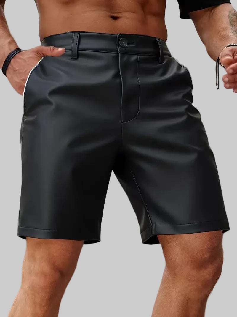 Te męskie szorty mają pas z szlufkami na pasek i zapięcie na guzik. Kieszenie z przodu mają kontrastowe obszycie wzdłuż krawędzi. Szorty sięgają powyżej kolan.
