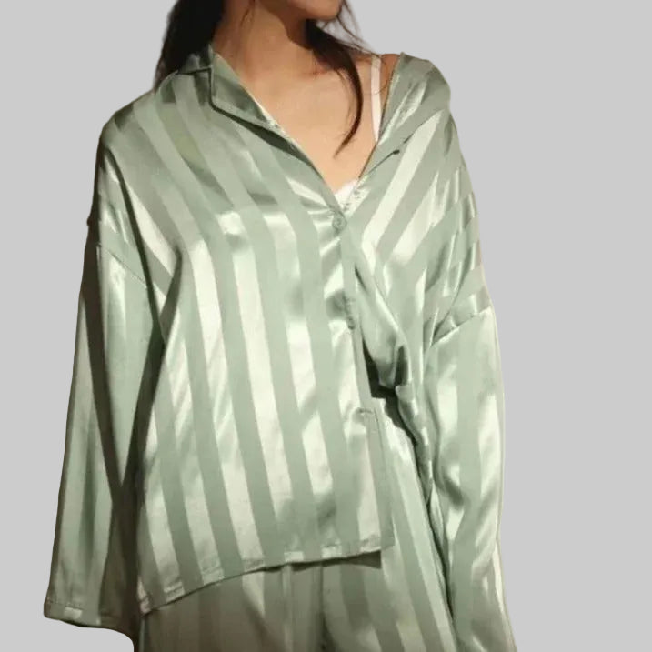 Damski Komplet z Koszulą na Guziki i Spodniami w Paski